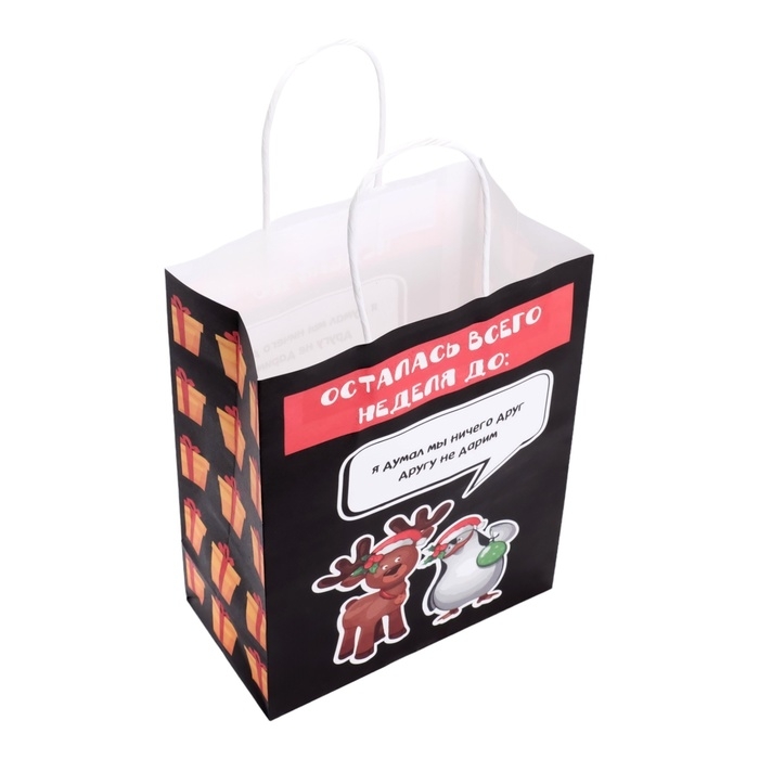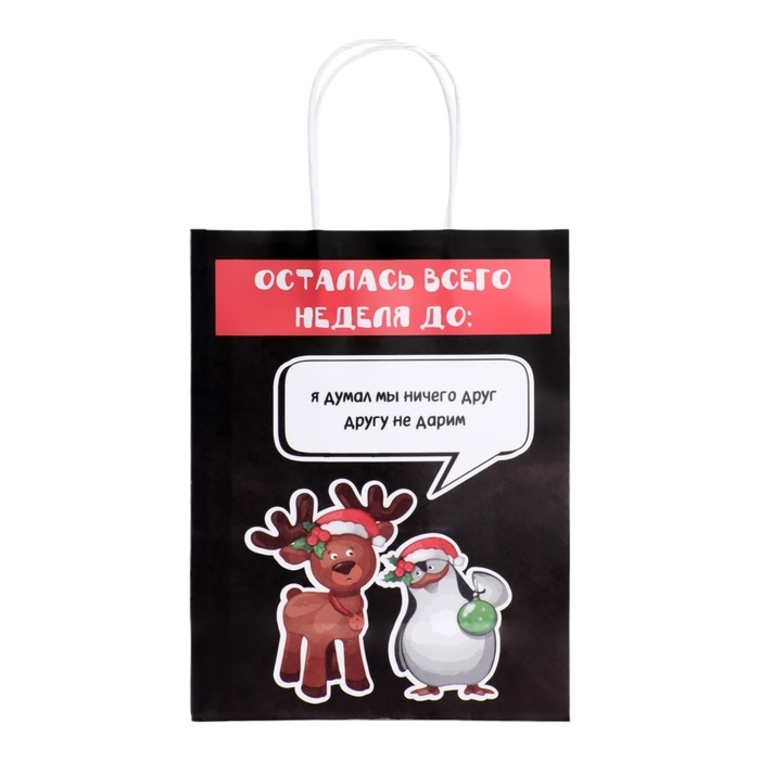 Крафтовый пакет с новогодним приколом — это идеальный выбор для тех, кто хочет добавить нотку юмора и оригинальности в праздничную упаковку подарков.