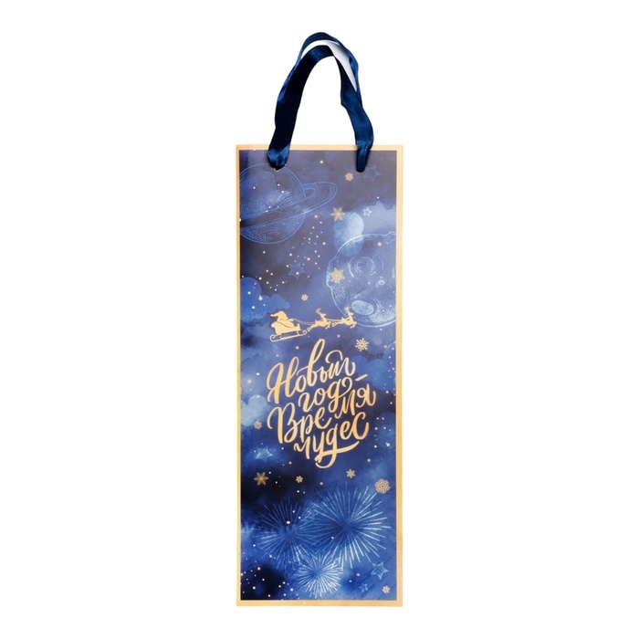 Новый год. Пакет подарочный новогодний под бутылку «Время чудес», 13 x 36 x 10 см.