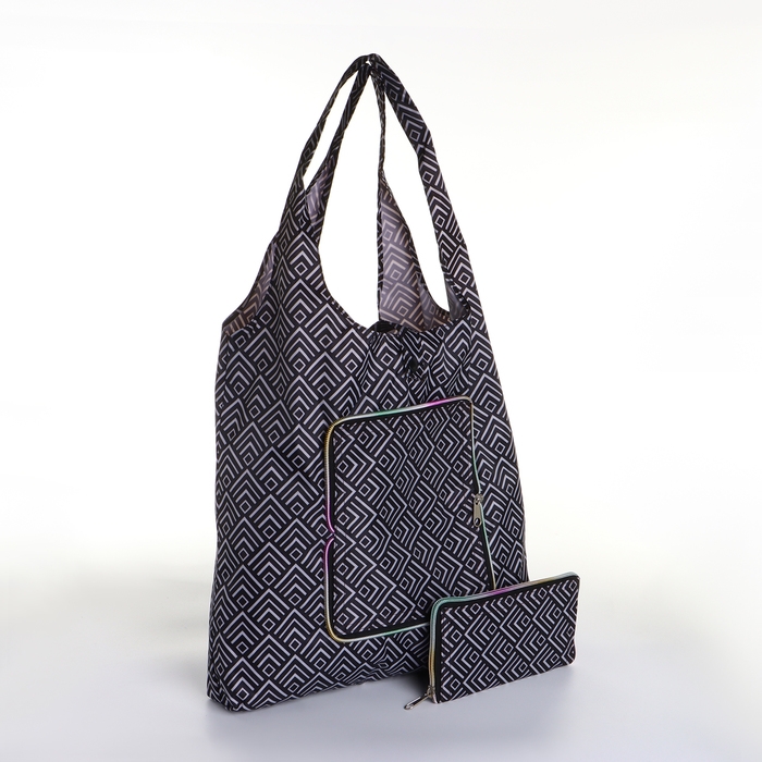 Сумка хозяйственная на кнопке, складная, цвет чёрный