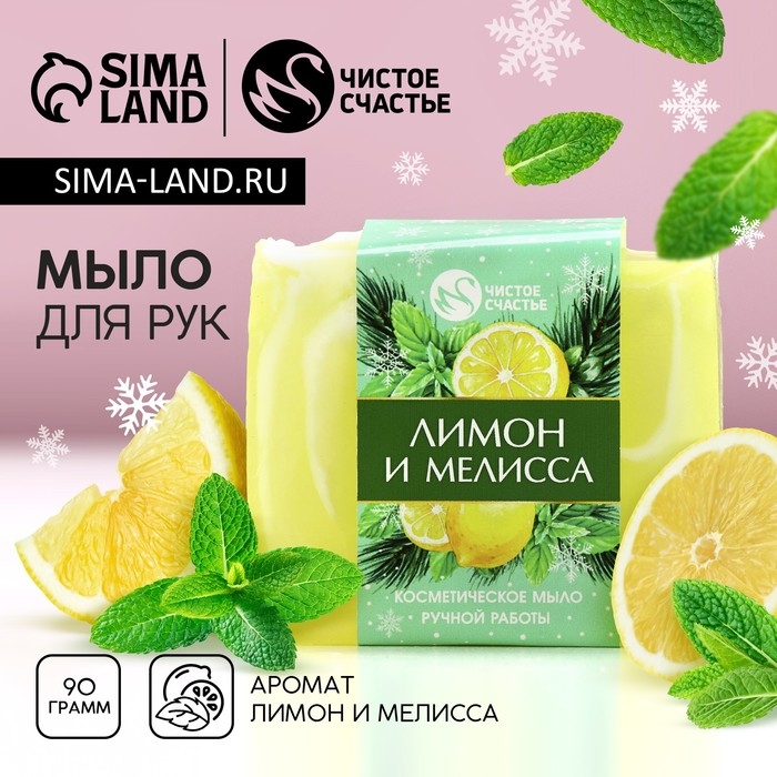 Новый Год. Мыло для рук ручной работы, 90 г, аромат лимона и мелиссы