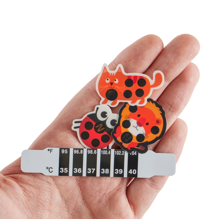 Детский термометр - наклейка налобный "Милые зверушки", до 40°, набор 4 шт