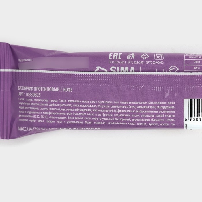 Состав: глазурь кондитерская тёмная (сахар, заменитель масла какао лауринового типа (гидрогенизированное пальмоядровое масло, эмульгаторы: лецитин соевый, сорбитан тристеарат), патока крахмальная, концентрат сывороточного белка, заменитель сахара – мальтодекстрин, влагоудерживающий агент – глицерин, стружка кокосовая, мука соевая обезжиренная, жир растительный, какао-порошок, белок яичный сухой, кофе натуральный растворимый, ароматизаторы «Карамель», «Кофе», консервант – сорбат калия.