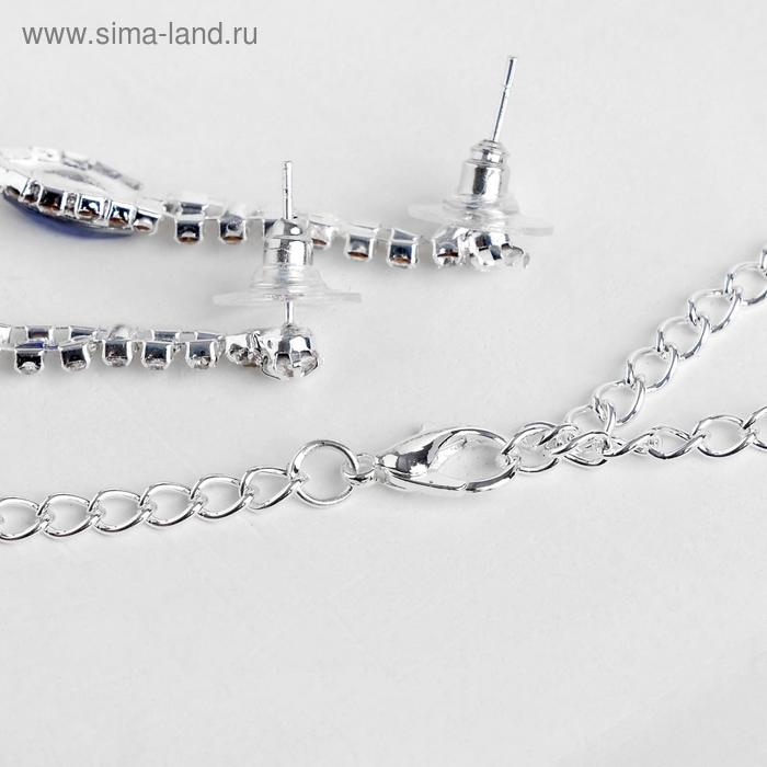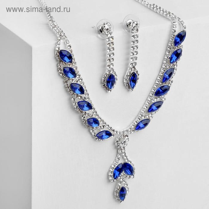 Набор 2 предмета: серьги, колье «Листопад» ромб, цвет сине-белый в серебре, 45 см