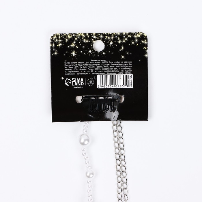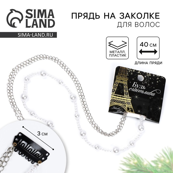 Заколка прядь с жемчугом новогодняя «Будь счастлива», на Новый год, 7 х 6,4 см