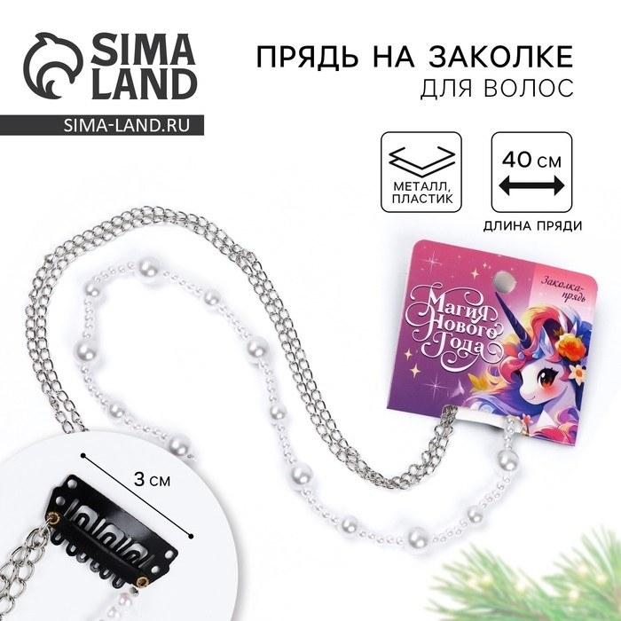 Заколка прядь с жемчугом новогодняя «Магия Нового года», на Новый год, 7 х 6,4 см