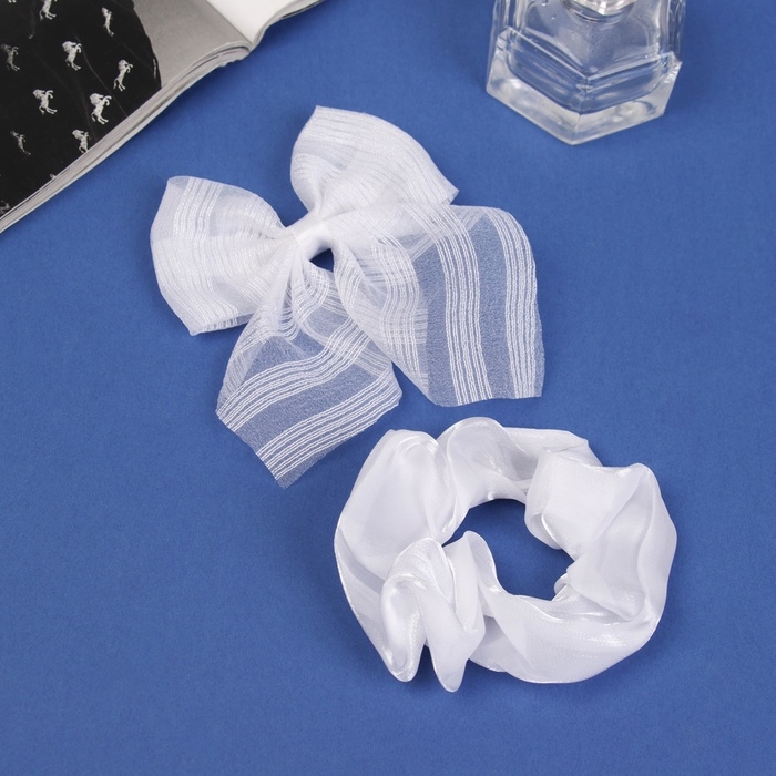Набор для волос "Школьница" (резинка 10 см, зажим 9 см) полоски объём, белый