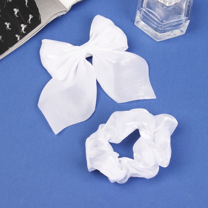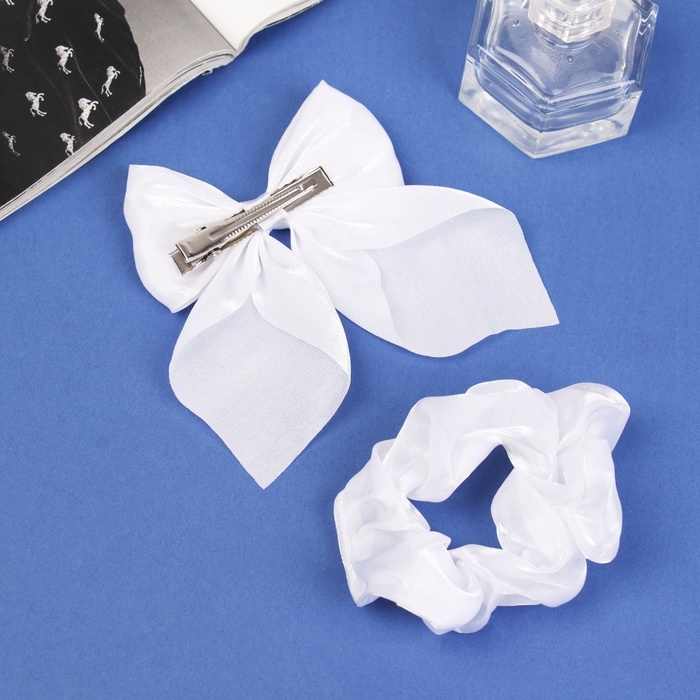 Набор для волос "Школьница" (резинка 10 см, зажим 9 см) классик объём, белый