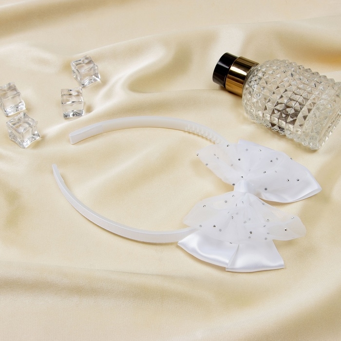 Ободок для волос "Школьница" двойной бант блеск, 1 см, белый