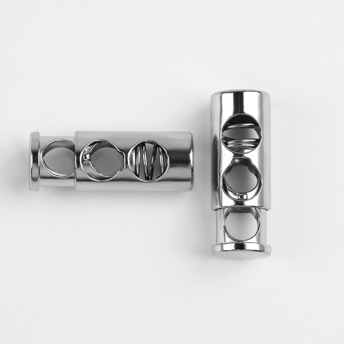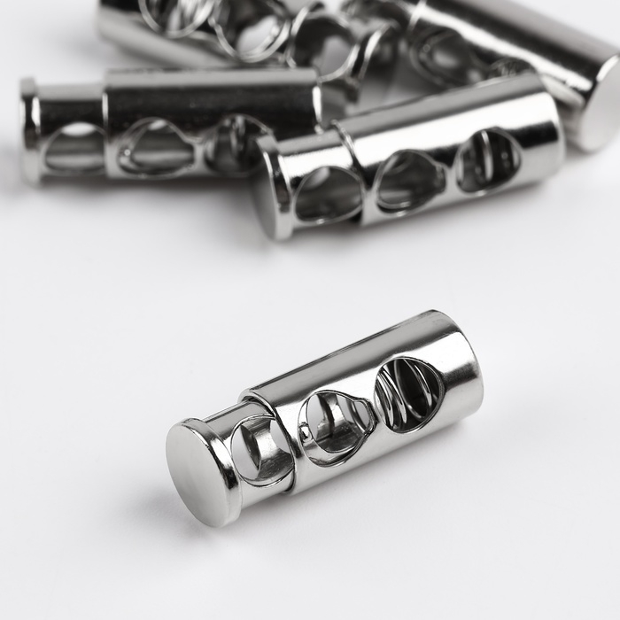 Фиксатор для шнура, двойной, d = 5 мм, 9 × 25 мм, 5 шт, цвет серебряный