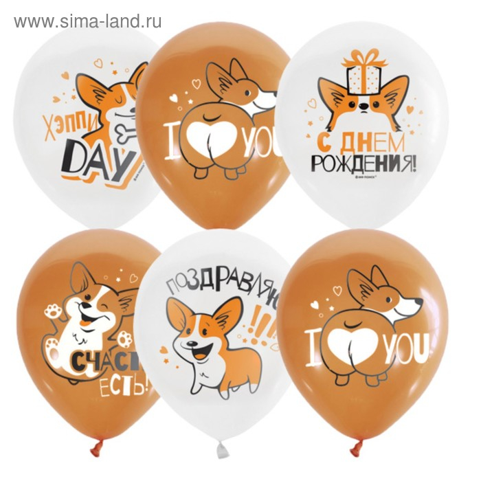 Шар латексный 12" «С днём рождения. Корги» пастель, 2 цв., 1 ст., набор 25 шт.
