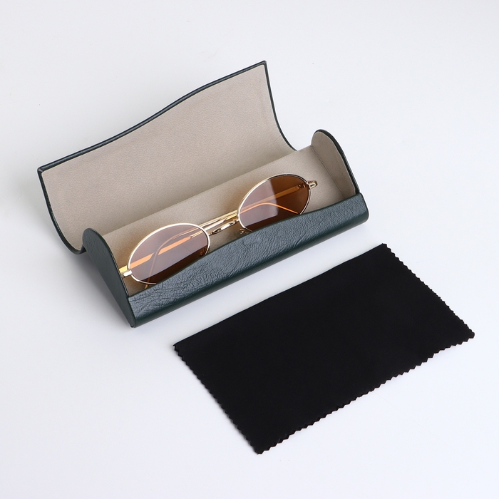 Футляр для очков — это необходимый аксессуар для любого современного человека, так как он поможет сохранить ваши очки в идеальном состоянии. Иногда возникают неудобства с ношением солнечных очков и очков для зрения одновременно, в этом случае нам пригодится специальный футляр для хранения очков. Футляр имеет жёсткий корпус, который защитит стёкла от пыли и предотвратит появление царапин и повреждений. Этот чехол – унисекс, он идеально подходит как для мужского, так и для женского стиля. Наш чехол для очков выполнен из качественной экокожи, которая обеспечивает надёжную защиту и долгий срок службы. Чехол имеет магнит, благодаря которому его можно легко и удобно закрыть. Этот чехол имеет горизонтальную форму, что позволяет легко и удобно хранить в нем очки. Также он обладает отличным солнцезащитным эффектом, благодаря специальному материалу, который не пропускает ультрафиолетовые лучи. Очечник из искусственной кожи универсален благодаря своей однотонной фактуре и стильному дизайну. Его тёмно-зелёный оттенок подойдёт каждому. Контейнер имеет удобную форму, которая позволяет легко и компактно хранить очки в сумке или кармане, не занимая много места. Жёсткий футляр — это прекрасный подарок для мужчин и женщин на любой праздник. За счёт своего модного внешнего вида футляр понравится парням или девушкам-подросткам.