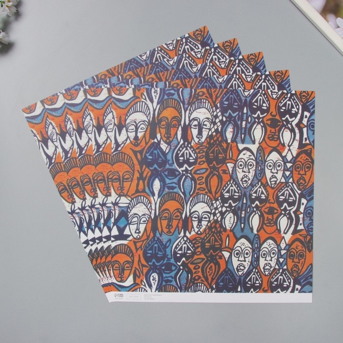 Бумага для скрапбукинга "Африка. Лица" плотность 180 гр набор 5 шт 30,5х32 см