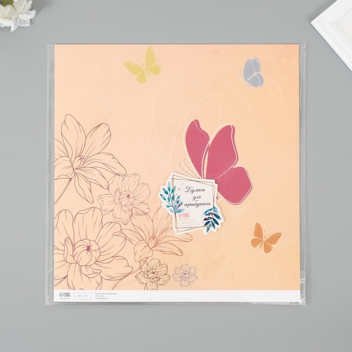 Бумага для скрапбукинга "Бабочки с цветами" плотность 180 гр набор 5 шт 30,5х32 см