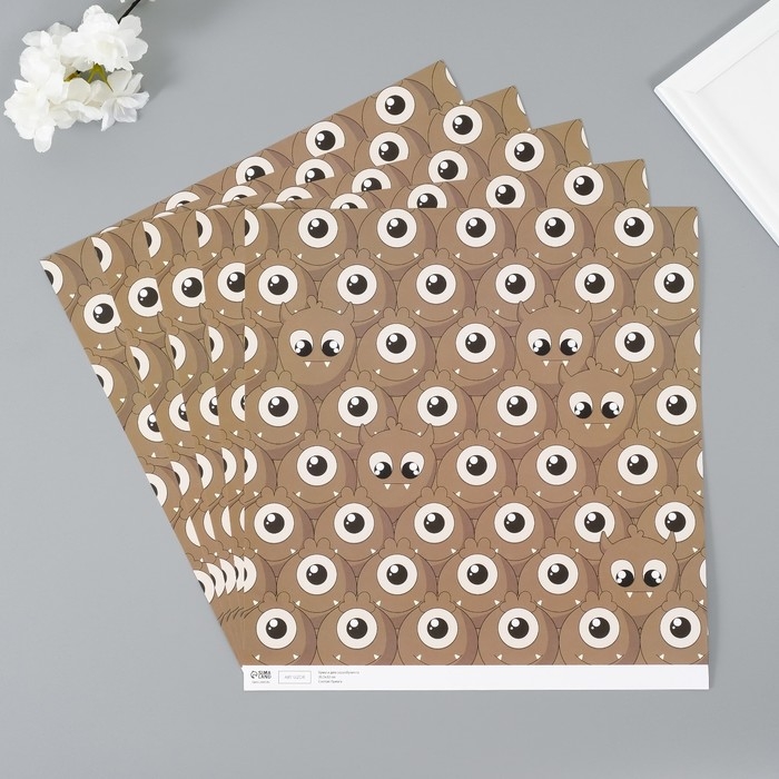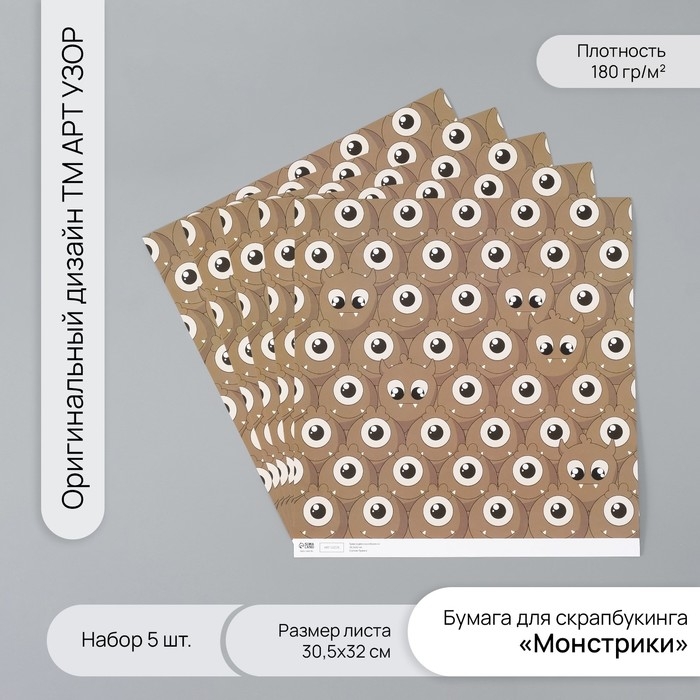 Бумага для скрапбукинга "Монстрики" плотность 180 гр набор 5 шт 30,5х32 см