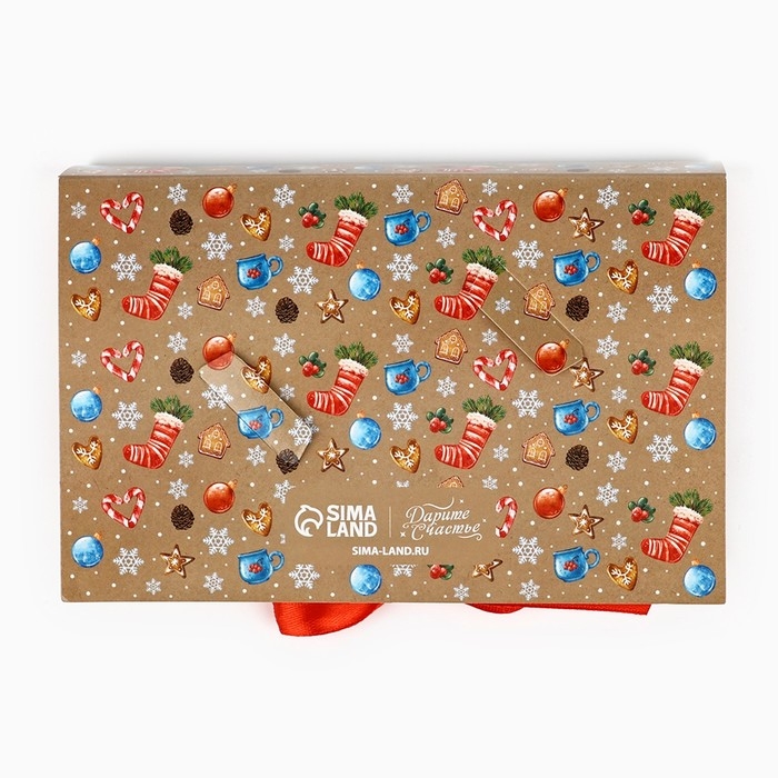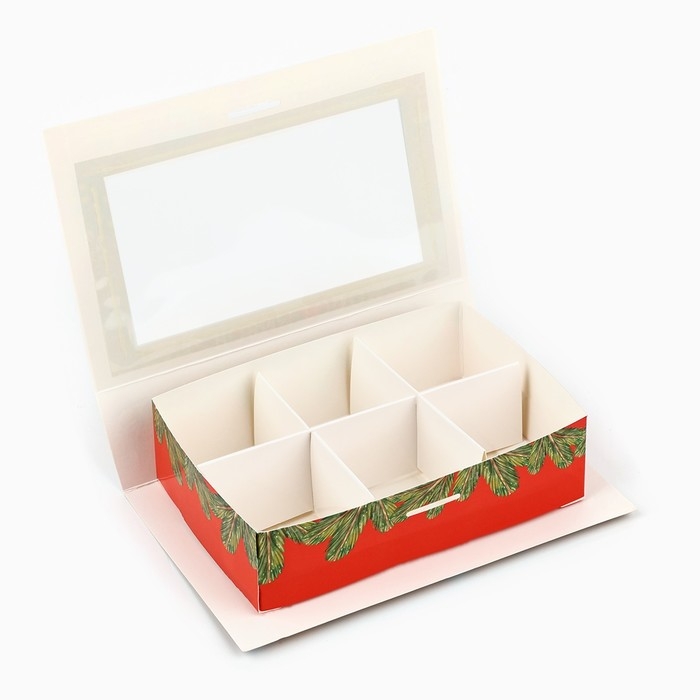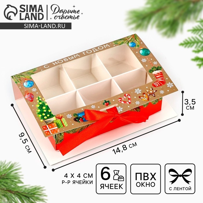 Коробка под 6 конфет с ячейками «Новогодние атрибуты» 14.8 х 9.5 х 3.5 см, Новый год