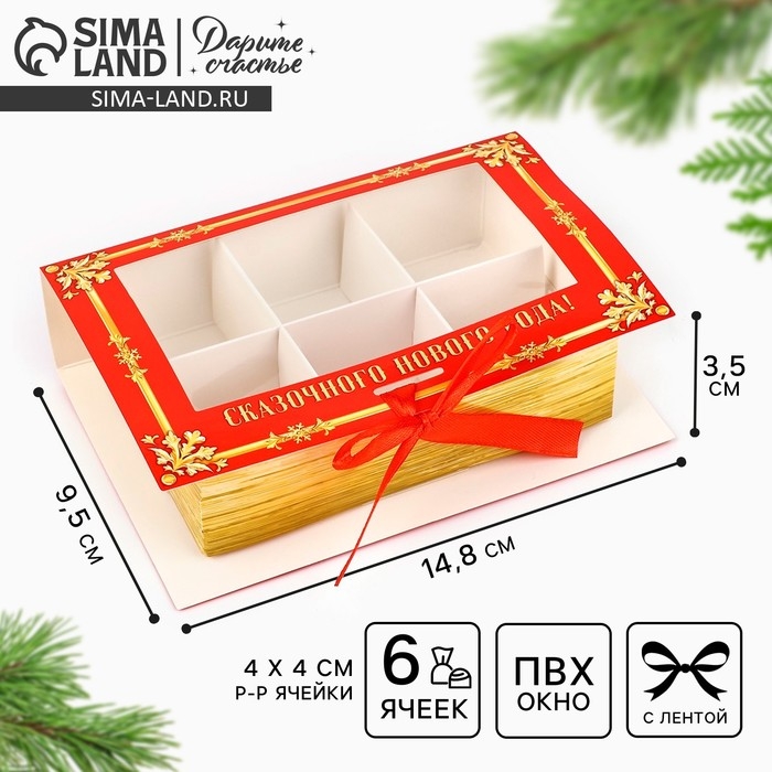Коробка под 6 конфет с ячейками «Зимняя почта» 14.8 х 9.5 х 3.5 см, Новый год