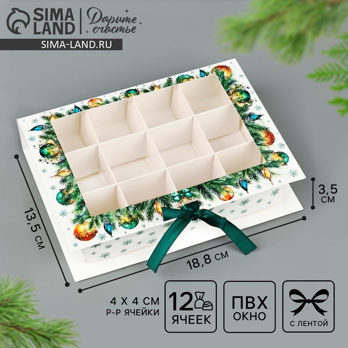 Коробка под 12 конфет с ячейками «С Новым годом!» 18.8 х 13.5 х 3.5 см, Новый год