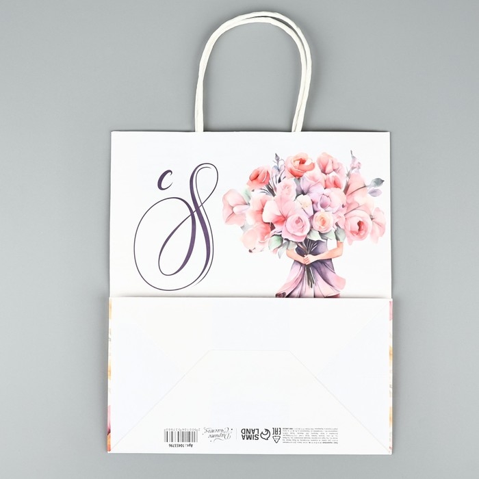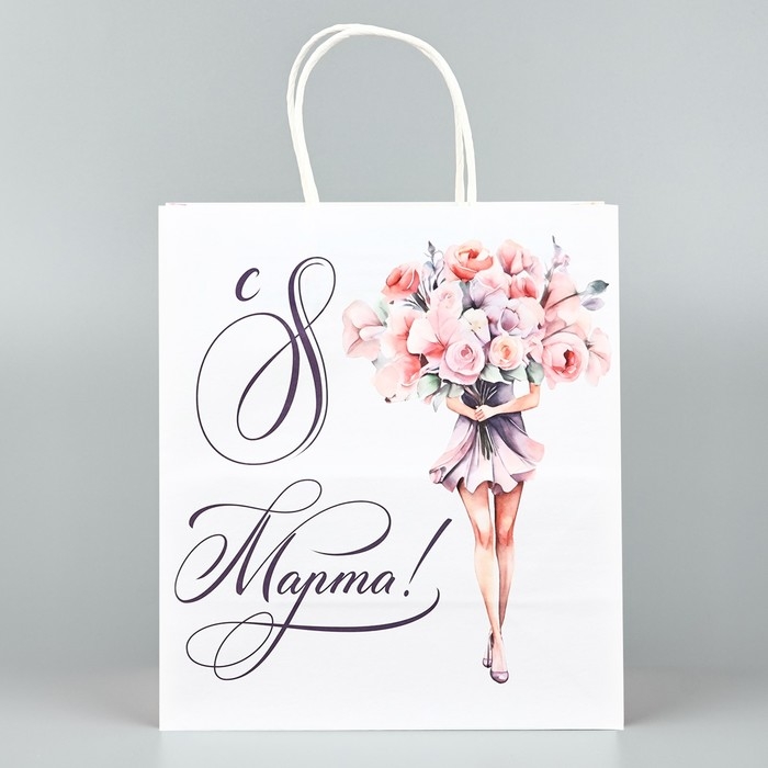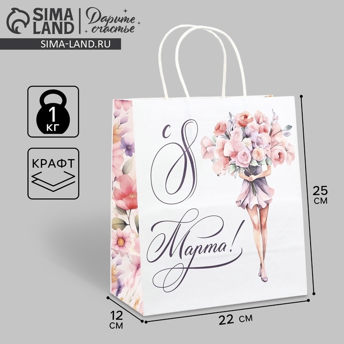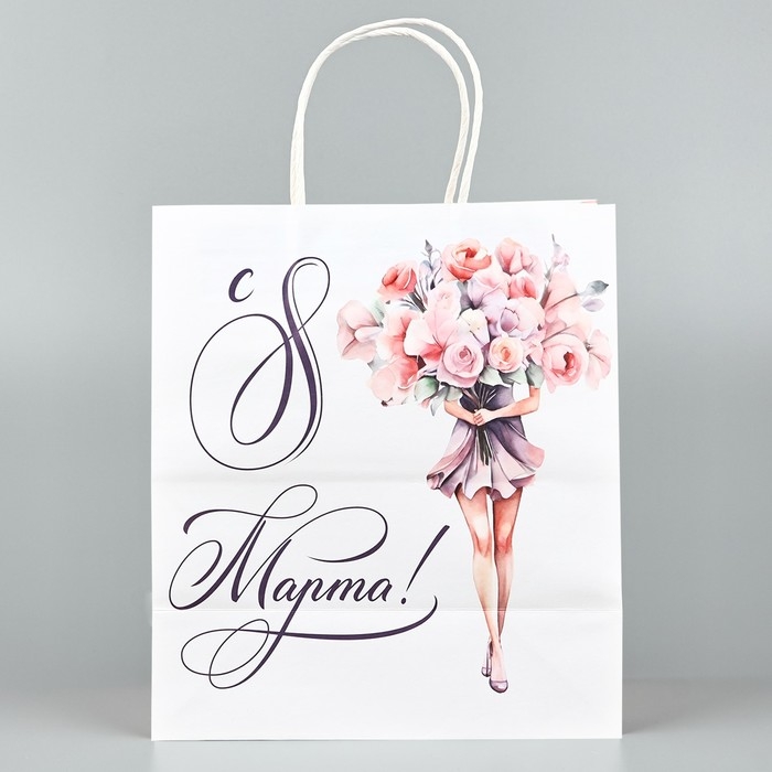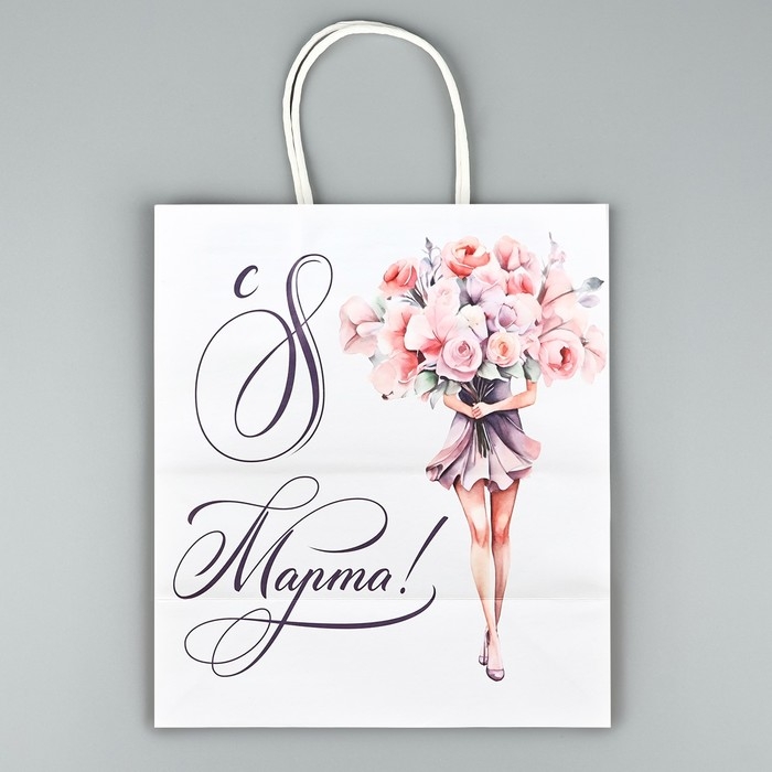 Пакет подарочный крафт «8 марта», цветы, 22 х 25 х 12 см