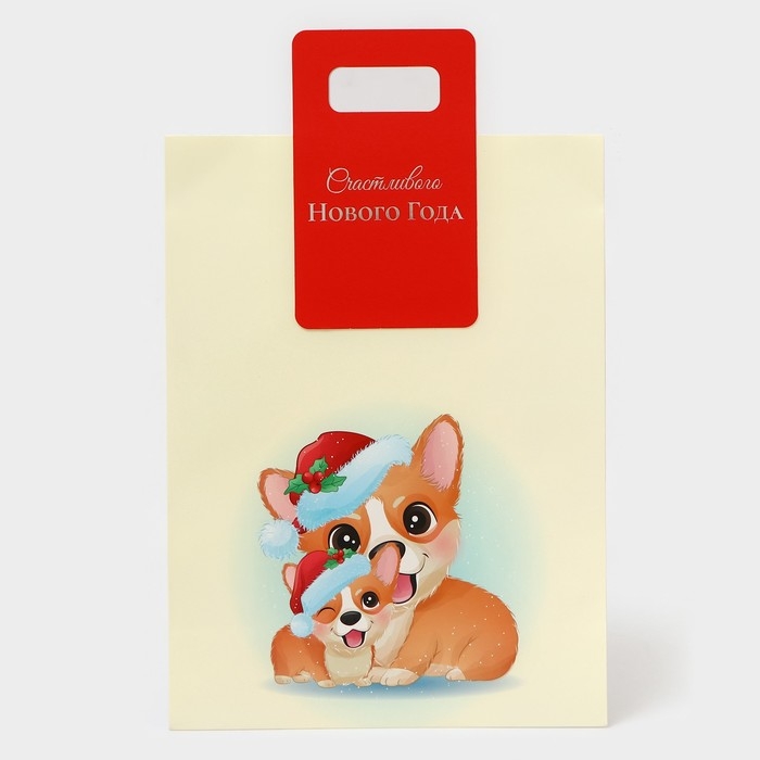 Пакет подарочный новогодний с вырубной ручкой "Корги" 30 х 40 х 12 см.