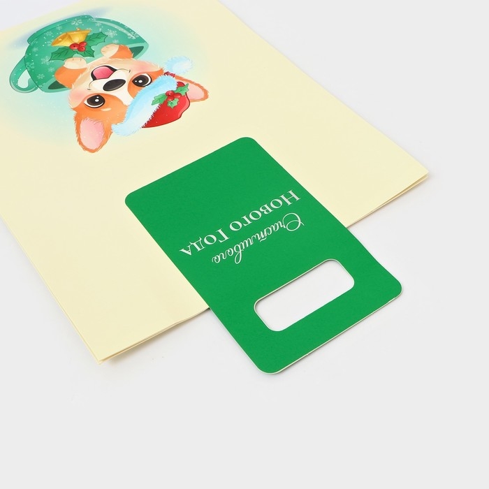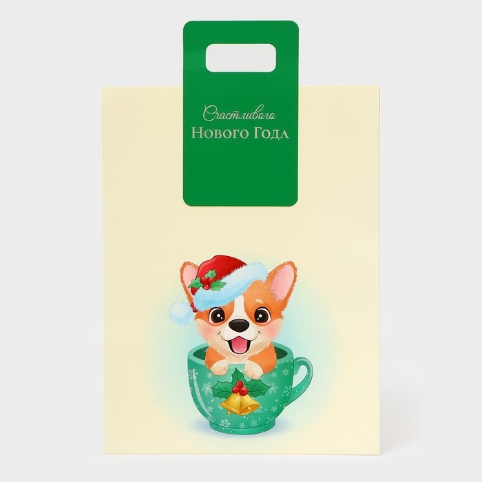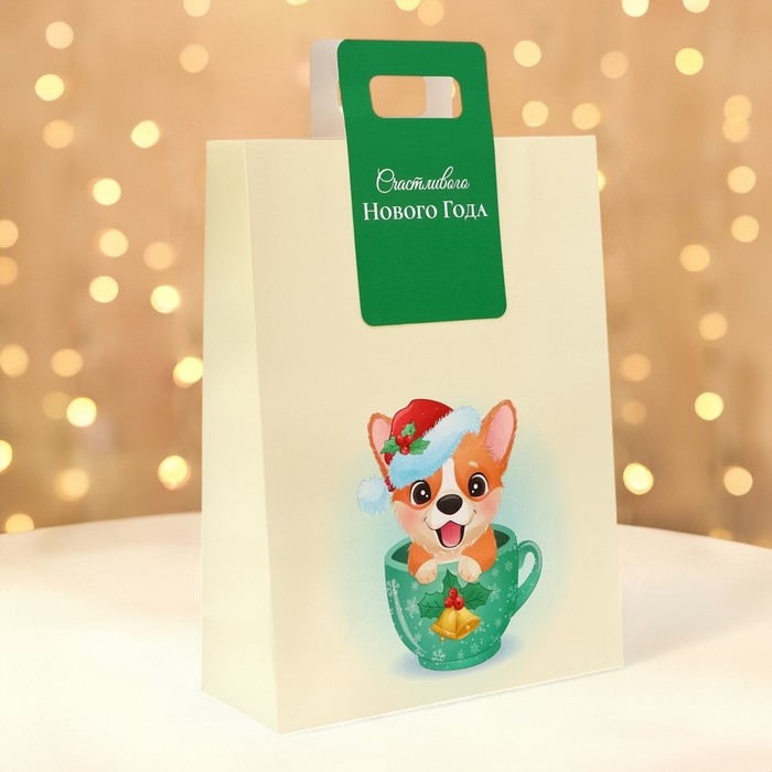 Пакет подарочный с вырубной ручкой "Корги" - это яркий и оригинальный способ упаковки подарков на Новый год. Он выполнен из плотной бумаги с изображением милого корги в новогоднем стиле, что делает его идеальным выбором для любителей собак и новогодней тематики.