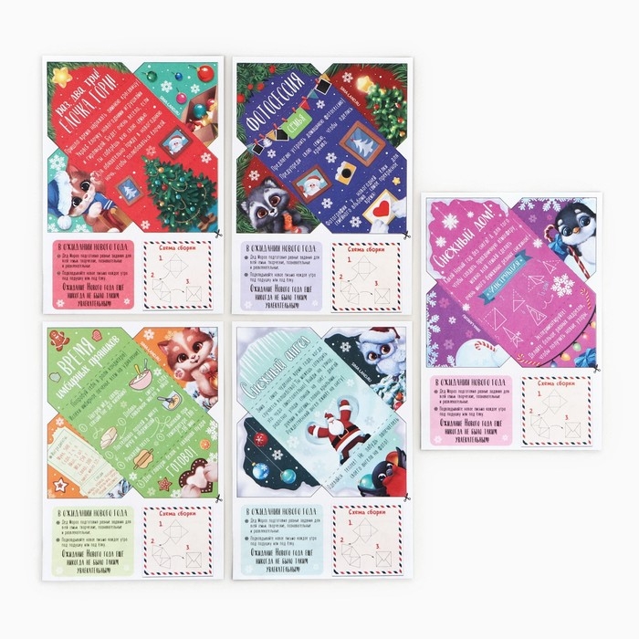 Этот набор включает в себя 5 писем от Деда Мороза, каждое из которых содержит загадку или задание, связанное с поиском подарка.