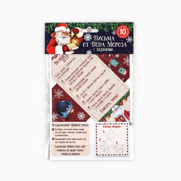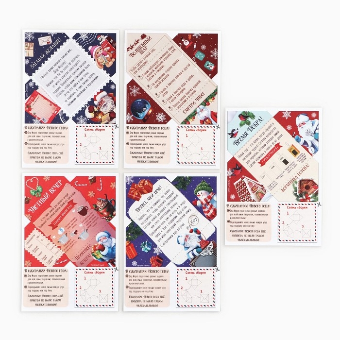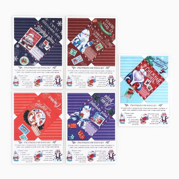 Этот набор включает в себя 5 писем от Деда Мороза, каждое из которых содержит загадку или задание, связанное с поиском подарка.