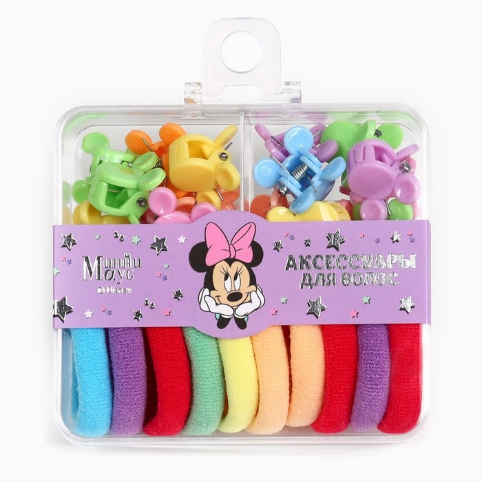 Набор подарочный, резинка для волос 10 шт, заколка крабик 12 шт, Минни Маус