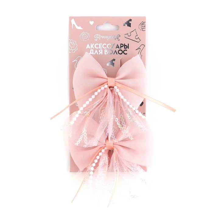 Заколка для волос, бант 7.5 см, 2 шт. Принцессы