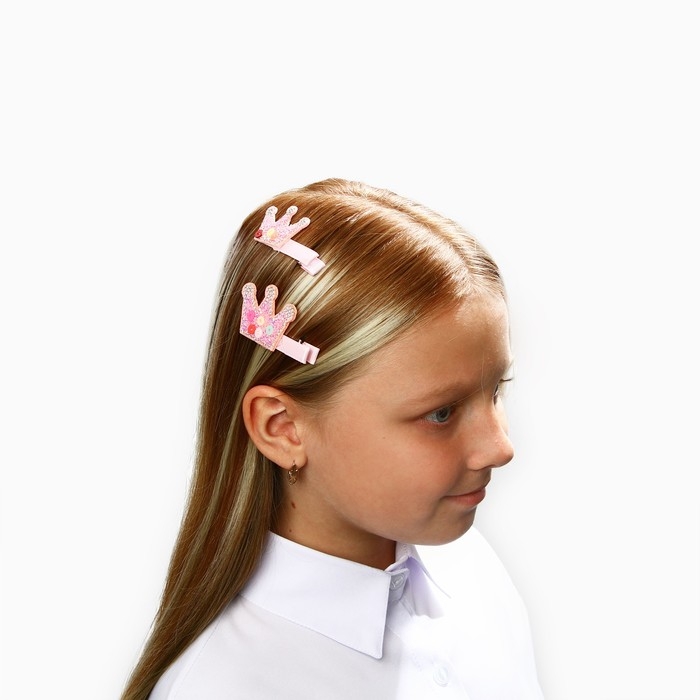 Заколка для волос "Корона" со стразами, 2 шт 5.5 см, Принцессы