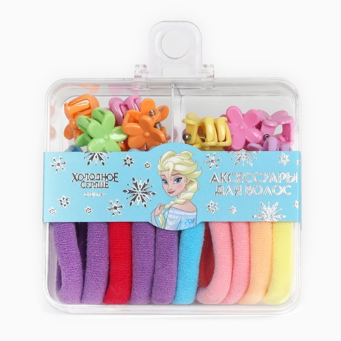 Набор подарочный, резинка для волос 10 шт, заколка крабик 12 шт, Холодное сердце