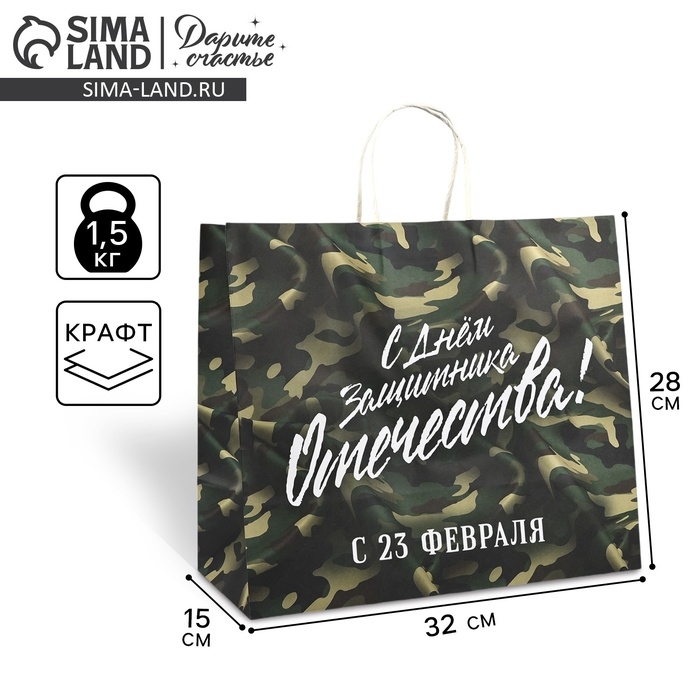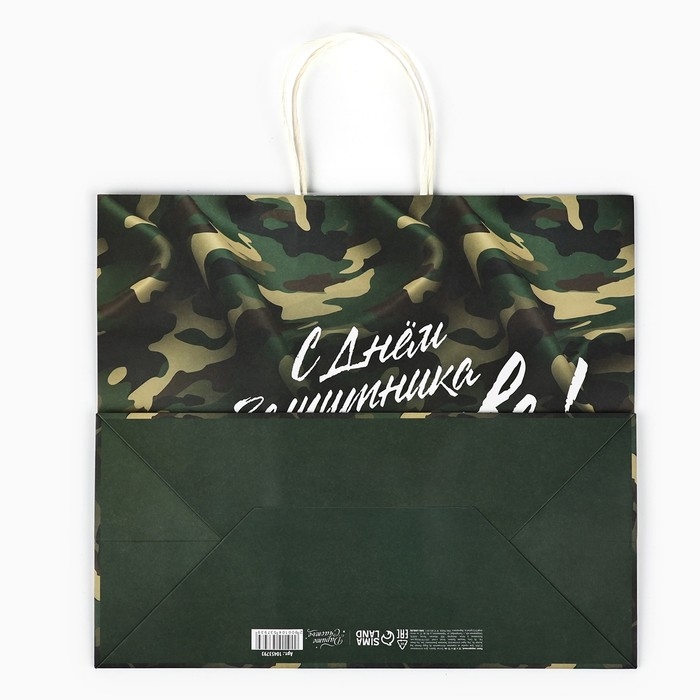 Пакет подарочный крафт «23 февраля», 32 х 28 х 15 см
