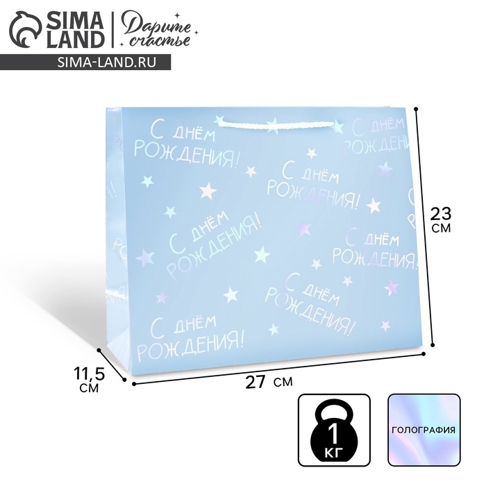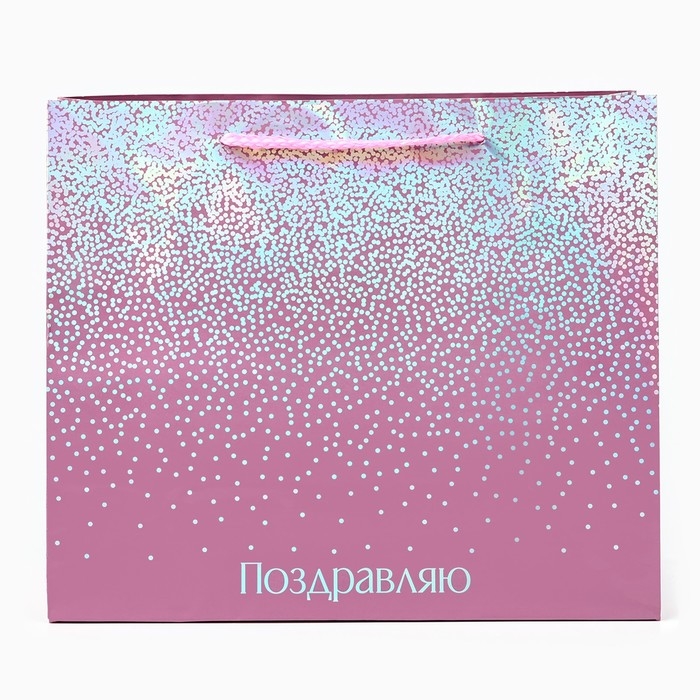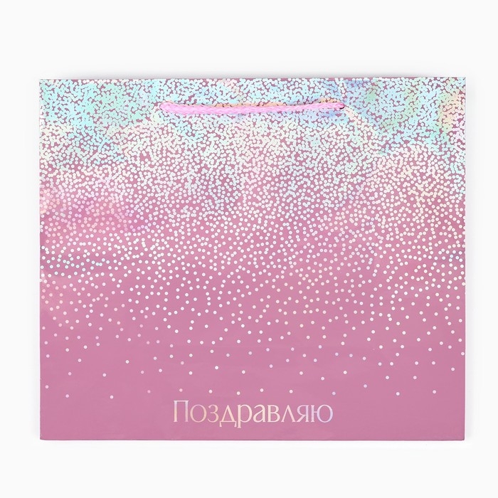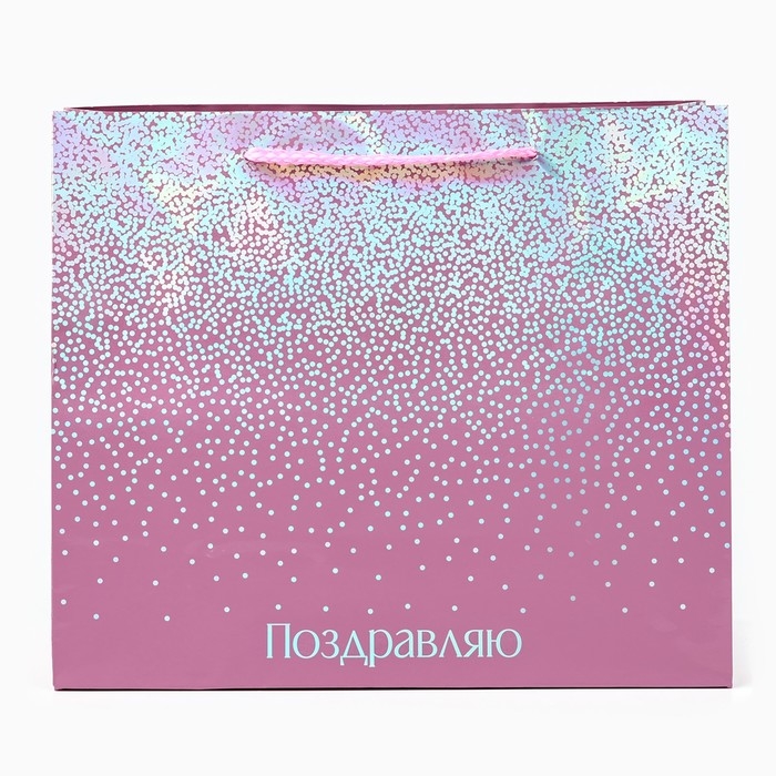 Пакет подарочный голографический «Поздравляю», 27 х 23 х 11.5 см