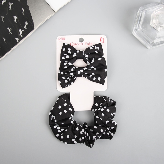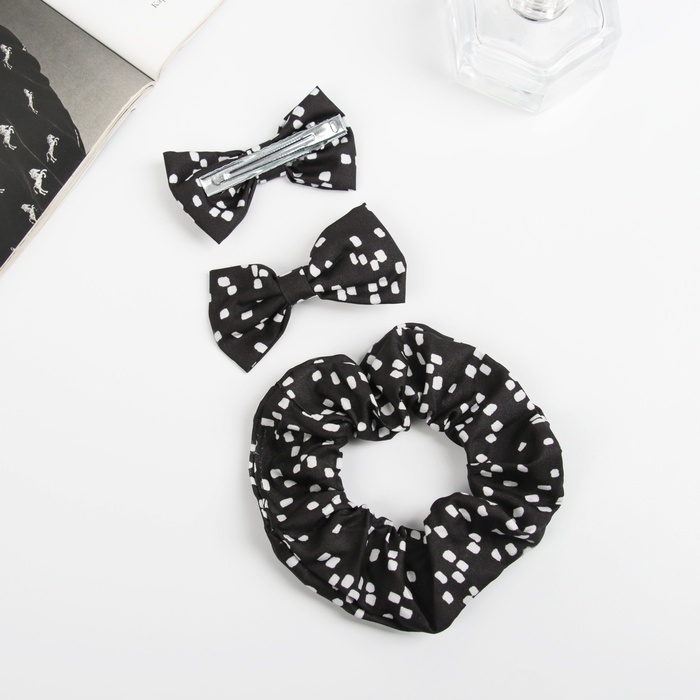 Набор для волос "Фелиция" (резинка 7 см, 2 зажима 6,5 см) элегия, чёрно-белый