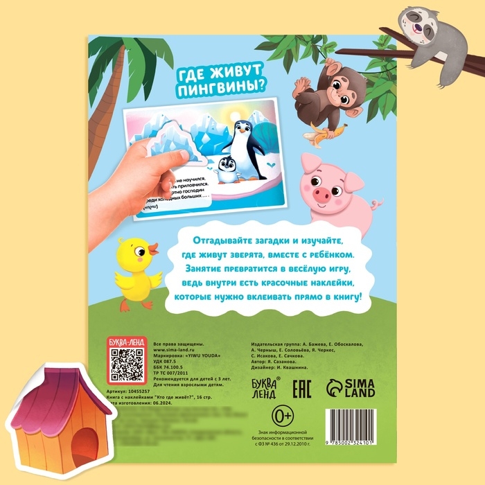 Книга с наклейками «Кто где живёт?», 16 стр., 30 наклеек, 3+