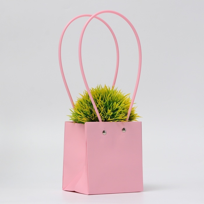 Сумка для цветов, квадратная, розовая, влагостойкая, 13х12х12 см
