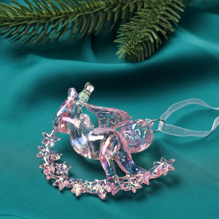 Украшение ёлочное "Ангел на звездах " 7х8 см, сиреневый перелив