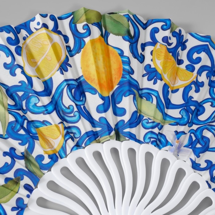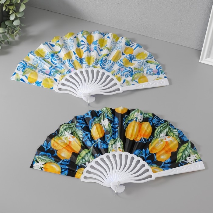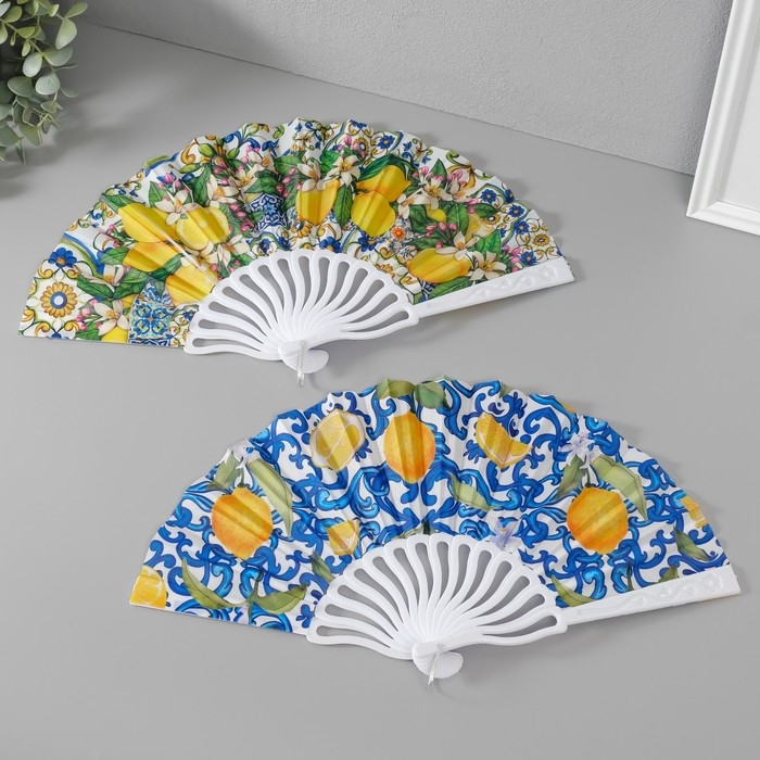 Веер пластик, текстиль "Сочные лимоны" МИКС 23 см