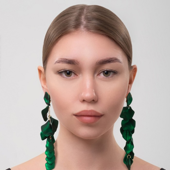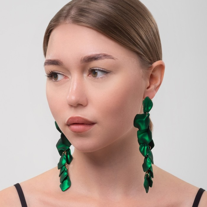 Серьги ассорти «Ветер» грация, цвет зелёный в золоте