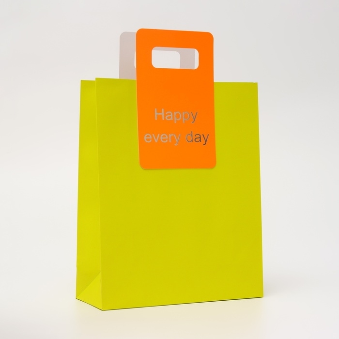 Пакет подарочный с вырубной ручкой 26 х 32 х 10 см , лайм