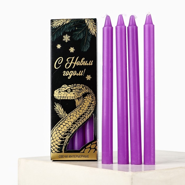 Набор новогодних восковых свечей «Новый год: Уютной зимы» 4 шт., сиреневые, 10 х 15 х 3 см
