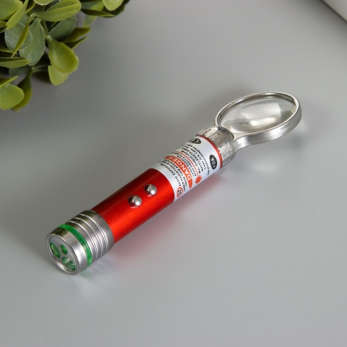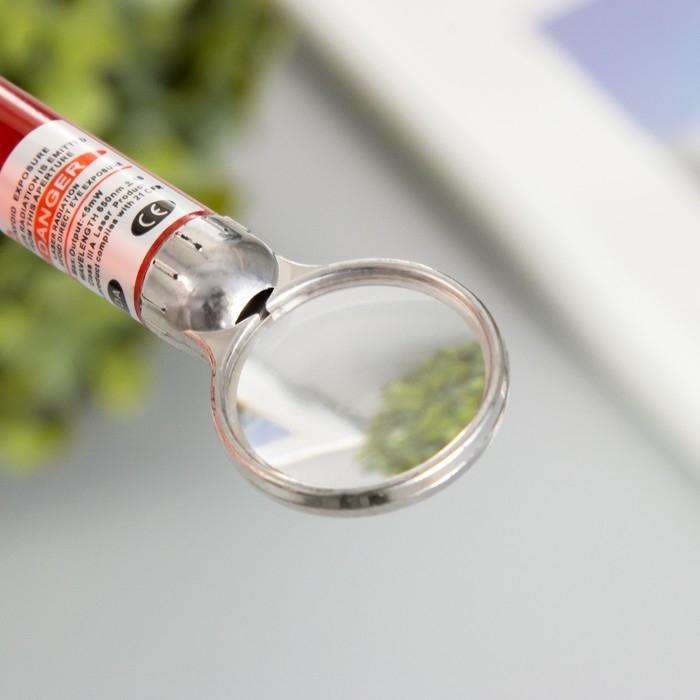 Указка лазерная лупа 2,5 см 3 режима мигает, светит, лазер LR44x3 шт "Красная" 1,5х2,8х10 см 10473