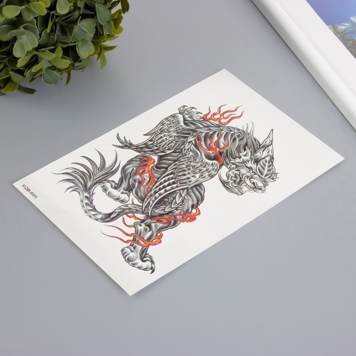 Татуировка на тело цветная "Китайский лев с крыльями" 11,4х21 см