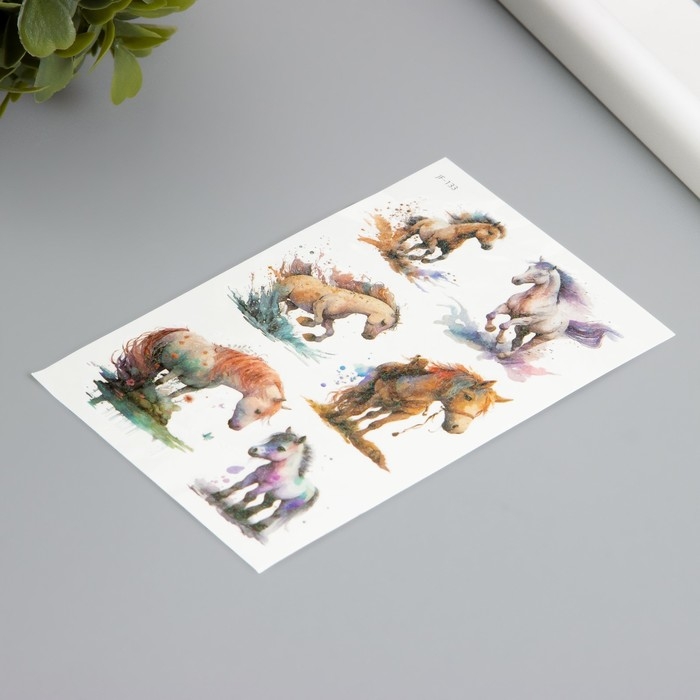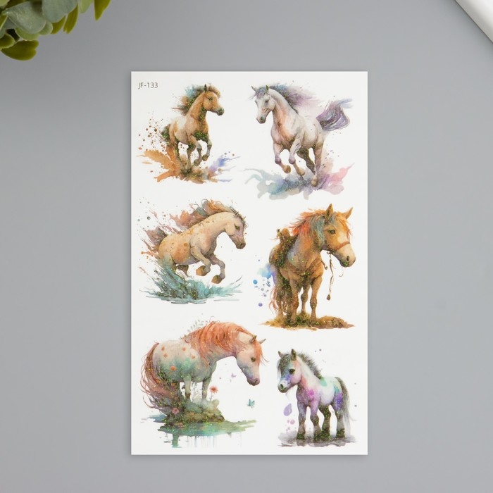Татуировка на тело фосфорные с блёстками "Лошадки" 7,5х12 см