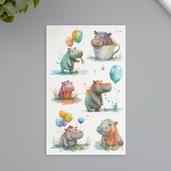 Татуировка на тело фосфорные с блёстками "Бегемотик" 7,5х12 см