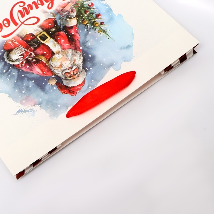 Пакет имеет плотную структуру и приятную на ощупь поверхность, что делает его удобным в использовании. Он украшен яркими новогодними узорами и изображениями, которые создают атмосферу праздника и волшебства.