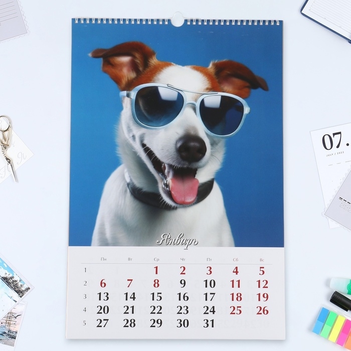 Календарь перекидной на ригеле А3 "Солнечные собачки" 2025, 32 х 48 см