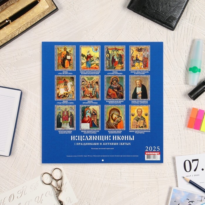 Календарь перекидной на скрепке "Исцеляющие иконы" 2025 год, 12 листов, 29х29 см