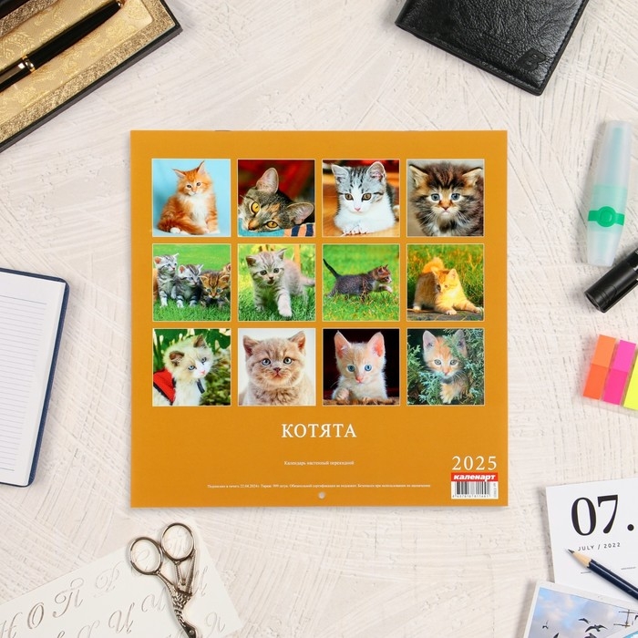 Календарь перекидной на скрепке "Котята" 2025 год, 12 листов, 29х29 см