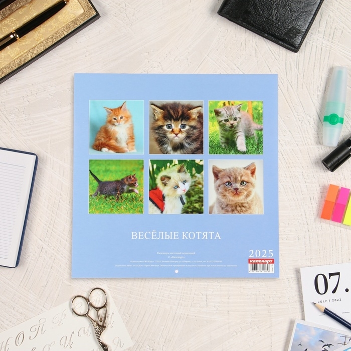 Календарь перекидной на скрепке "Весёлые котята" 2025 год, 6 листов, 29х29 см