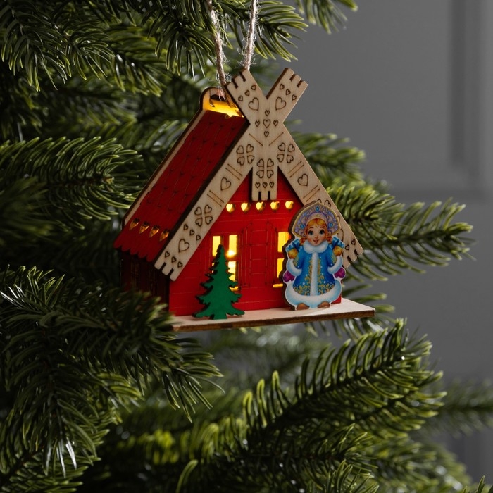 Подвеска световая "Дом Снегурочки", 8х4х8.5 см, 1 LED, AG10x3 (в компл.), свечение тёплое белое